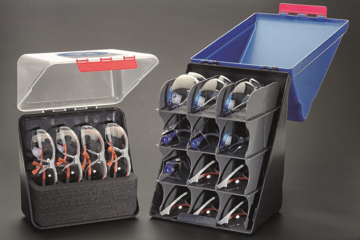 Für die sichere und saubere Aufbewahrung Ihrer Schutzbrillen direkt dort, wo sie verfügbar sein sollen. Sicherheit gewähren die Boxen durch den schlagfesten Werkstoff ABS in Signalfarbe mit den internationalen Symbolen. Die Boxen bieten einfachste Handhabung und Befestigung durch Aufkleben oder Anschrauben. Mit neuer schnell griffbereiter Öffnungslasche in rot.