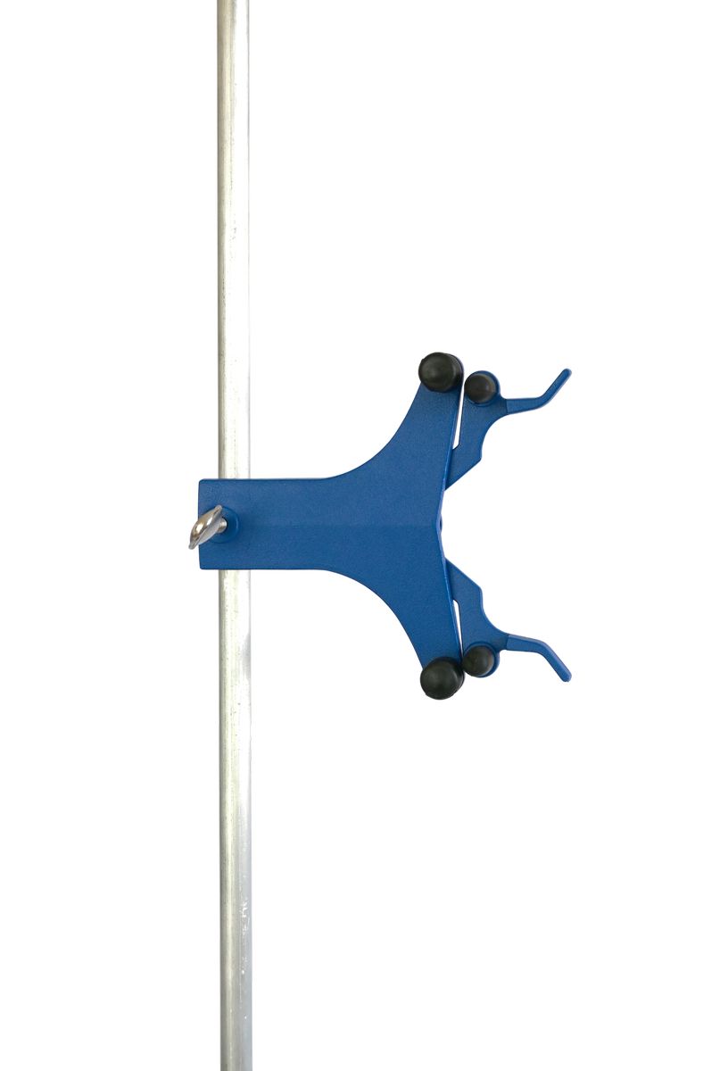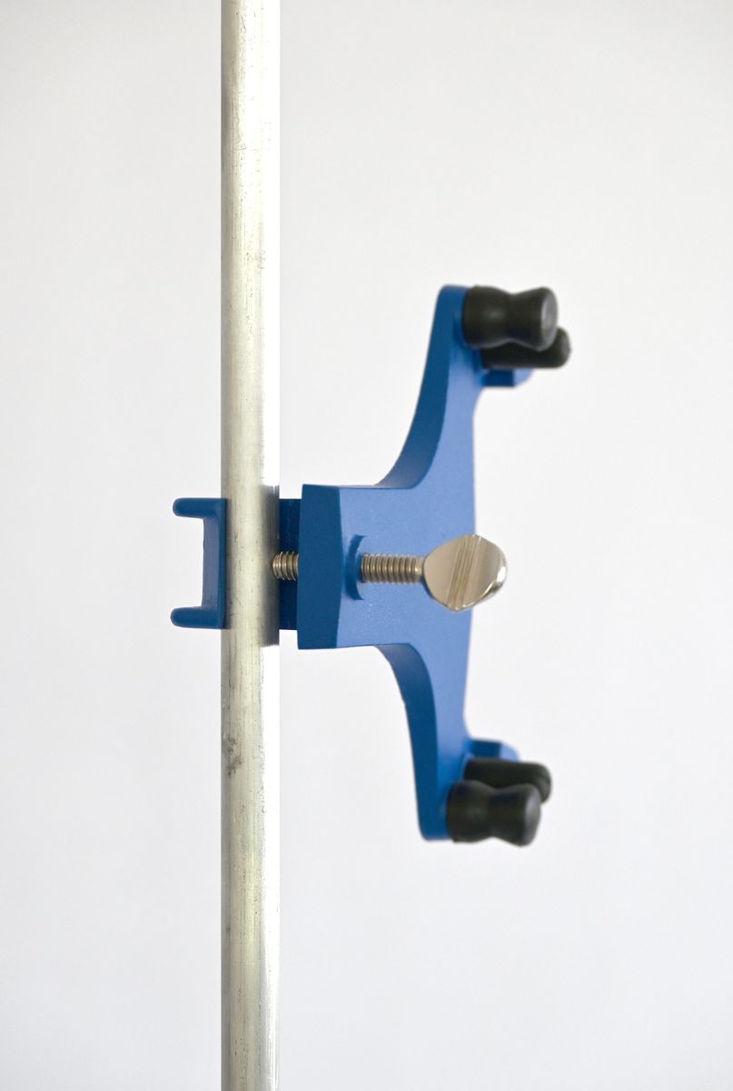 für Stativstäbe von 10 – 12 mm Durchmesser mit griffigen Gummirollen als Spannhalter, dies ermöglicht ein sicheres und leichtes Einspannen, sowie eine einfache Höhenverstellung.