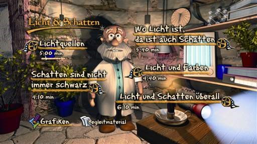 Sehr anschauliche Computeranimationen unterstützen diese Darstellungen und vermitteln den Schülern grundlegende Kenntnisse über Licht und Lichtquellen, über Halb- und Kernschatten. - Unser "Professor Lunatus" ist ein weiterer, stets wiederkehrender Protagonist der Filme.