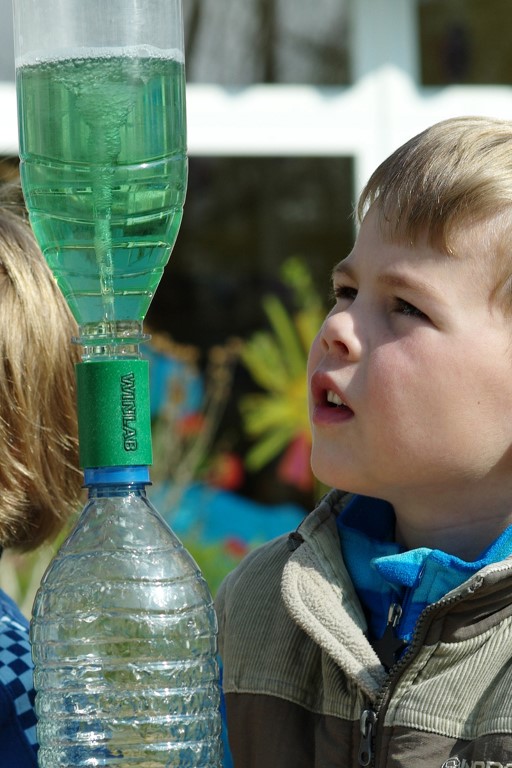 Am spannendsten aber ist es, wenn die Kinder einen „Tornado“ erzeugen, indem sie die Flasche unten mit einer Hand festhalten und oben mit der anderen Hand eine schnelle Rotation erzeugen.