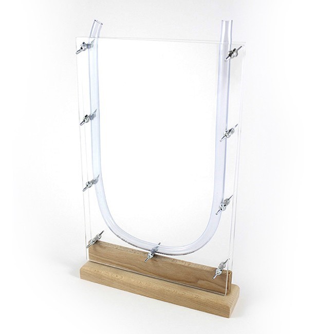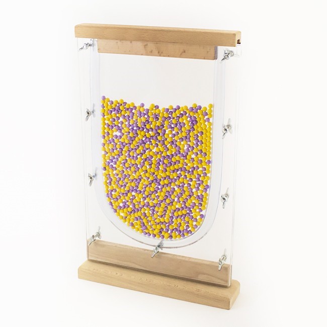 Der einfache Versuchsaufbau mit der Küvette XXL besteht in der Grundausstattung aus zwei Scheiben Acrylglas. Der Reaktionsraum wird durch einen transparenten Schlauch gebildet der von neun Flügelmuttern fixiert wird. Die Küvette steht stabil in einem Ständer. Das praktische Schraubsystem ermöglicht die Scheiben nach dem Versuch einfach und schnell zu reinigen (spülmaschinengeeignet). Der zusätzliche Deckel ermöglicht das Experimentieren mit Schüttgütern.