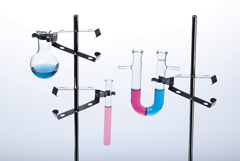 aus rostfreiem Federstahl mit Federspange; zum Haltern von Reagenz- und Testgläsern bis 18 mm Durchmesser