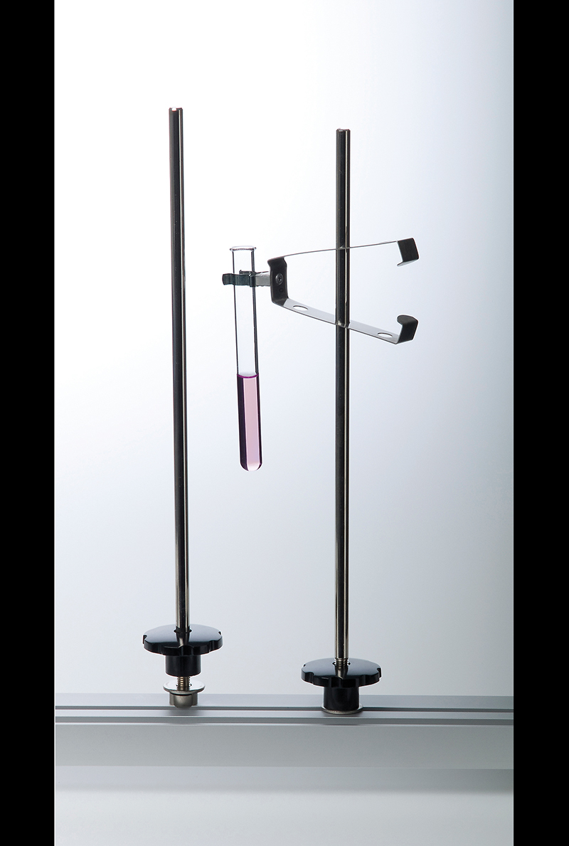 Der Schnellspannstab lässt sich mit seiner Nutmutter in die Endbohrungen der Dreifachschienen einsetzen und ebenso wie der Schnellspannreiter im zentralen Laufschlitz verstellen, lösen und fixieren. Länge 420 mm x 10 mm Durchm.