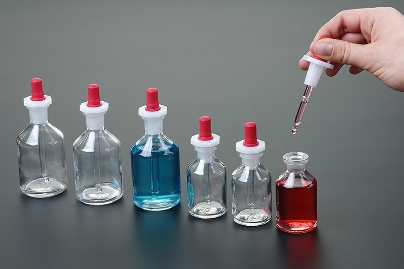 mit NS-Kunststoffstopfen und eingearbeiteter Glaspipette, inkl. Gummihütchen