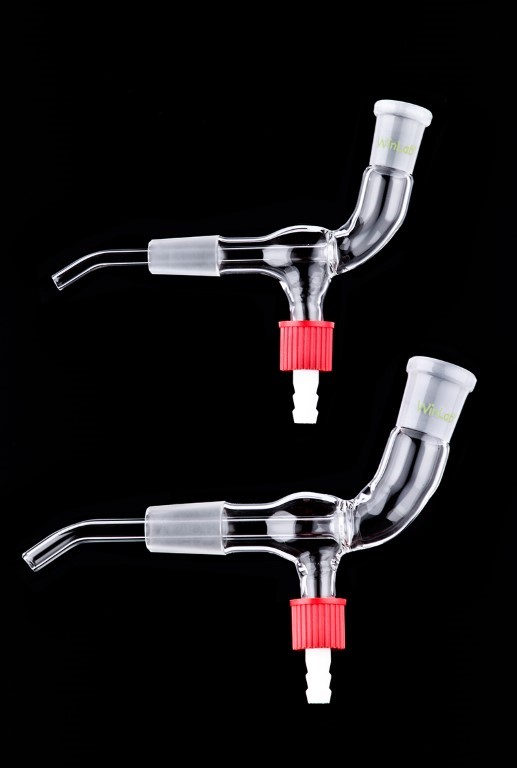 als Fraktioniervorstoß zur Verwendung mit der Fraktioniervorlage, mit 1 Kernschliff, 1 senkrechten und1 rechtwinklig angesetzten Hülsenschliff, mit langem abgewinkelten Abtropfrohr