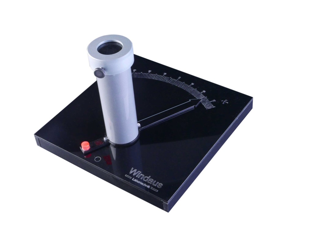 Demonstrationspolarimeter für die Tageslichtprojektion zur Messung des Drehwinkels optisch aktiver Substanzen (Aminosäuren, Zucker), qualitativ und quantitativ zur Konzentrationsbestimmung; mit durchleuchtbarer Winkelanzeige -40° - 0 + 40° (links-bzw. rechtsdrehend). Für den Einsatz ist ein Tageslichtprojektor mit 400 Watt notwendig, bzw. LED-Fluter.