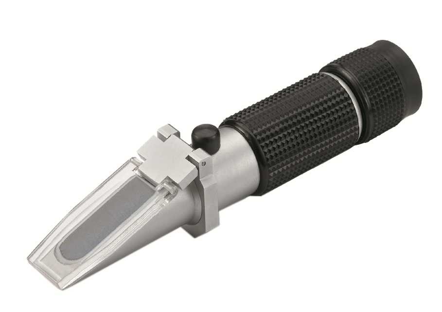 zur Zuckergehaltsbestimmung von Früchten, Obstsaft, Marmelade, Wein, Sirup oder Honig. Messbereich 0-32 Brix, Auflösung 0,2 Brix.