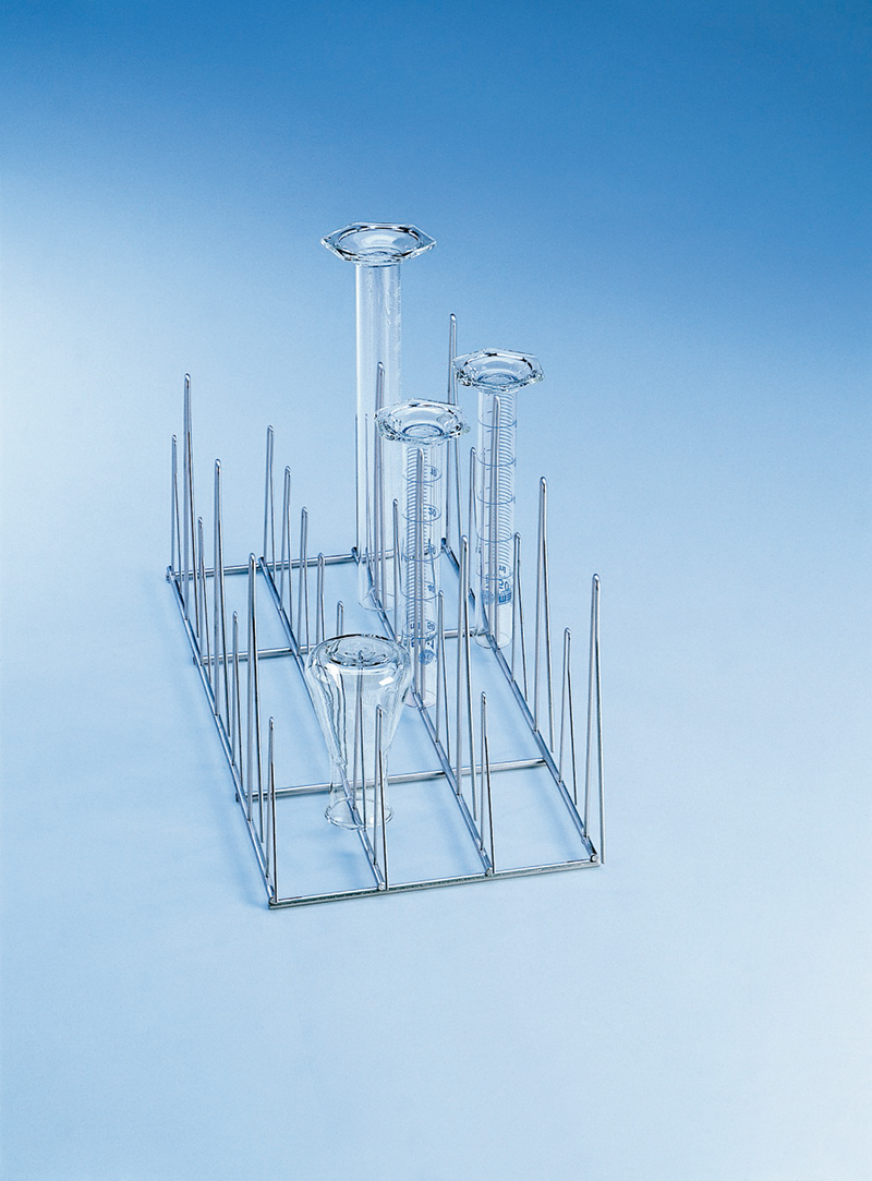 In 2 Höhen: 10 Federhaken, 175 mm hoch,16 Federhaken, 105 mm hochZur Aufnahme von Weithalsgläsern, Messzylinder etc.Einsetzbar in Unterkorb