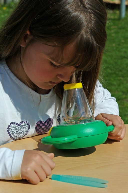 Insekten und Pflanzenteile lassen sich bequem einbringen. Darüber hinaus kann das Oberteil als separate Lupe benutzt werden.