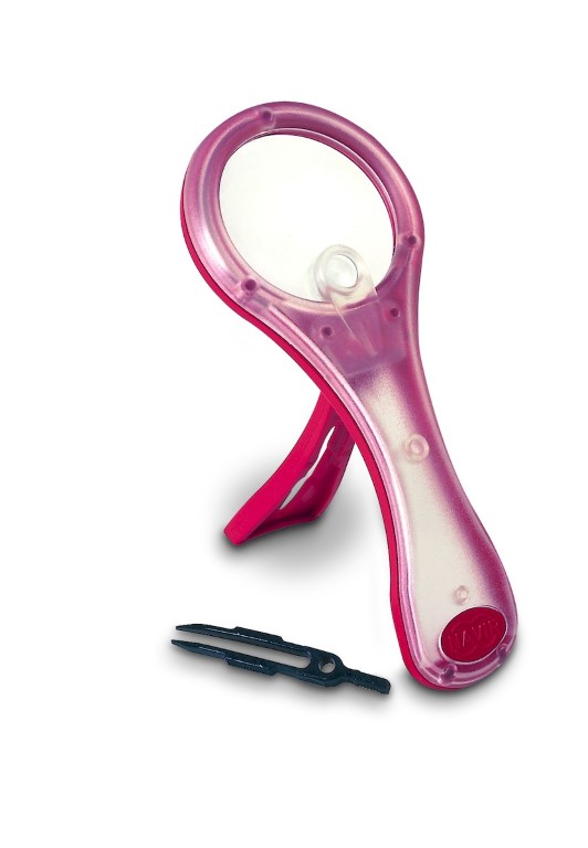Mit kleiner Pinzette im Ständer, Vergrößerung 3x und 7x