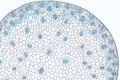 Weiterführende Links zu "Zea mays, Mais, typischer monokotyler Stamm mit zerstreuten Gefäßbündeln, quer. Geschlossene kollate"