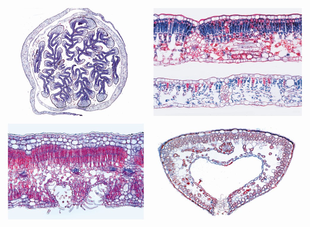 - 2. Monokotyles und dikotyles Blatt, Mais und Hahnenfuß, zwei Querschnitte