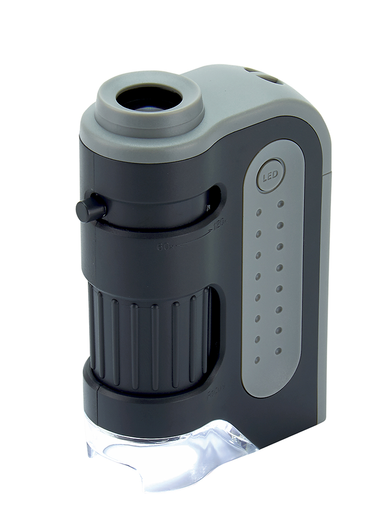 Ein äußerst leistungsstarkes Taschenmikroskop mit Vergrößerung von 60x bis 120x welches so leicht und kompakt ist das es sich überall mitnehmen lässt!