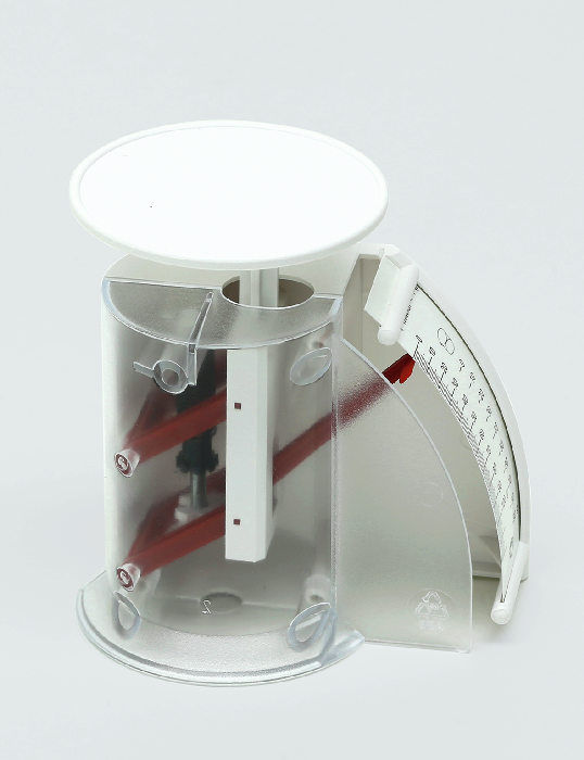 Federwaage in teilweise transparentem Kunststoffgehäuse mit deutlich sichtbarer Wiegemechanik, Wägeplatte und verschiebbarer Skala zum Taraausgleich. Federwaage in teilweise transparentem Kunststoffgehäuse mit deutlich sichtbarer Wiegemechanik, Wägeplatte und verschiebbarer Skala zum Taraausgleich. Zusätzlich mit einer auf den Becher 13162 abgestimmten Skala.