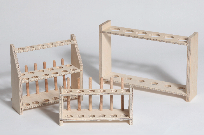 für 6 Reagenzgläser mit einem Durchmesser von bis zu 18 mm, mit 6 Abtropfstäben.