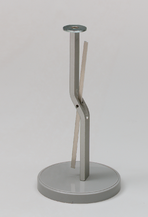 Anzeigegerät für elektrostatische Ladungen. Aluminiumhalter mit Metallzeiger und Kondensatorplatte auf rundem Kunststoffsockel.