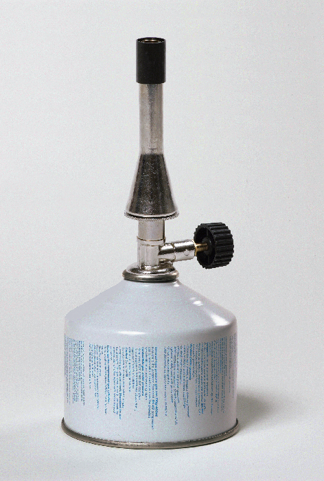 Mit stufenloser Luftregulierung und Hahn (Nadelventil) sowie einer Ventil-Kartusche 61198. Der Brenner ist DIN-DVGW registriert. Flammentemperatur: ca. 1450 °C Höhe mit Kartusche: 200 mm