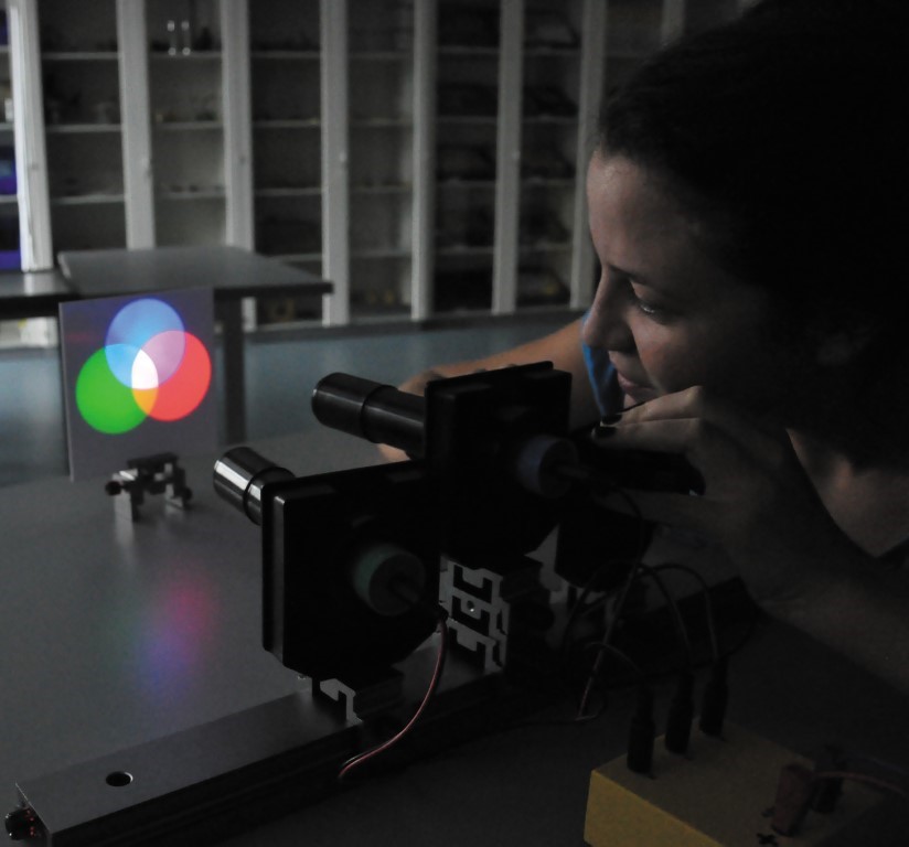 - Die additive Farbmischung im Schülerversuch - mit drei separaten ➜ Diodenleuchten mit superhellen LEDs und Kondensorlinsen
