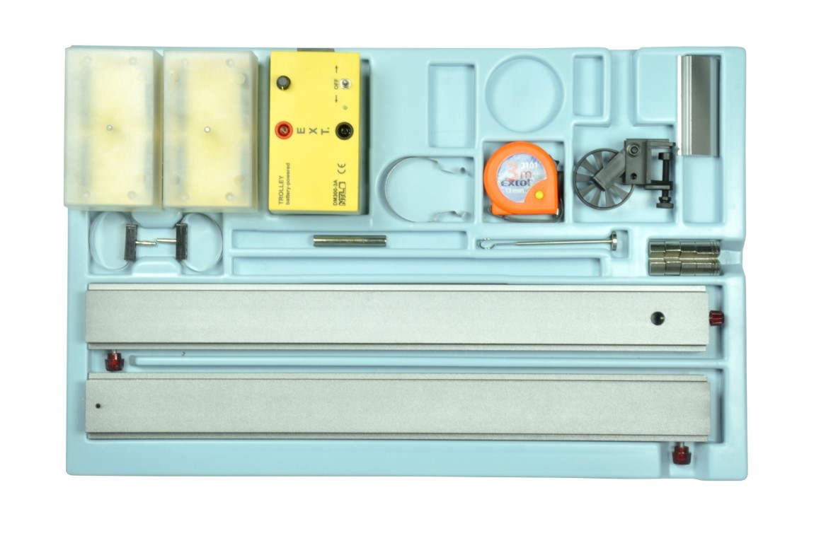Schülerversuchs-Gerätesatz zur Durchführung von 9 Versuchen aus der Mechanik (Dynamik) zu den Themen