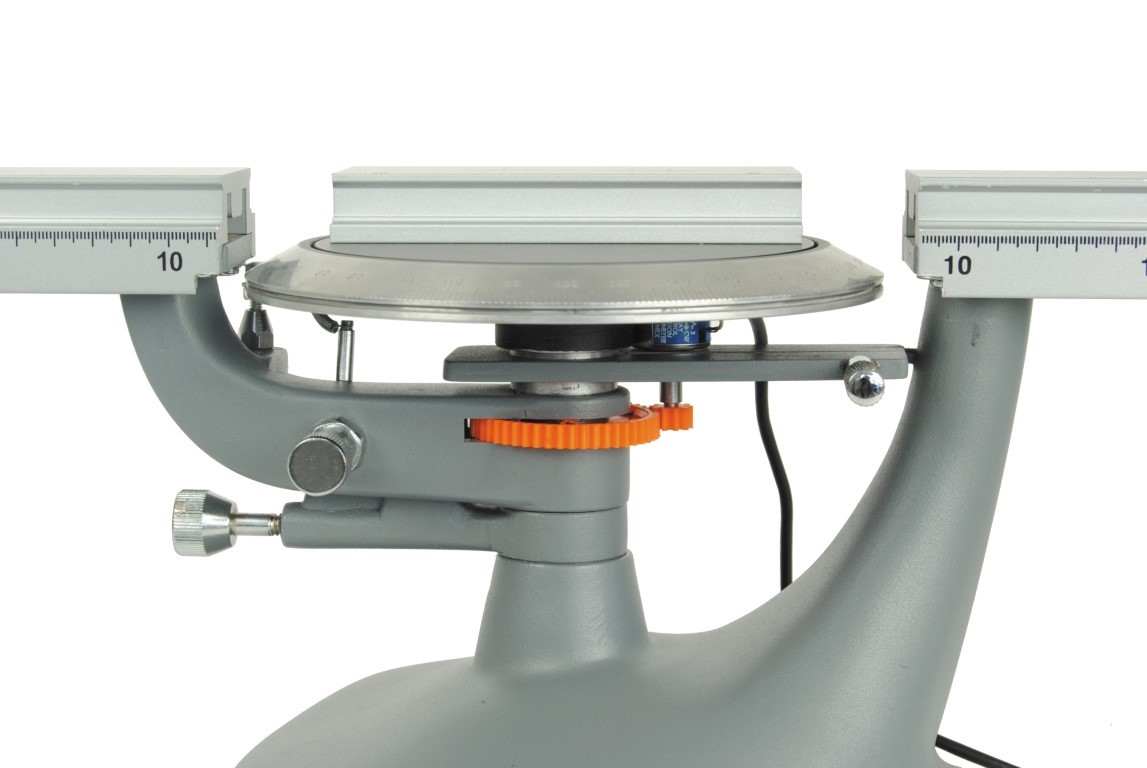 - zweiter Arm auf reibungsarmer Metallachse schwenkbar mit Arretier- und Noniusstellschraube